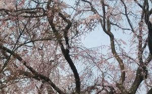 大学卒業後、通信系の会社に就職しました。その後28歳で転職し60歳の定年退職まで、通算38年間働き続けました。この枝垂桜は、平成28(2016)年3月31日の辞令交付式で「定年退職辞令」を受け取り、部屋を出た時に咲いていた桜を何気なく写したものです。