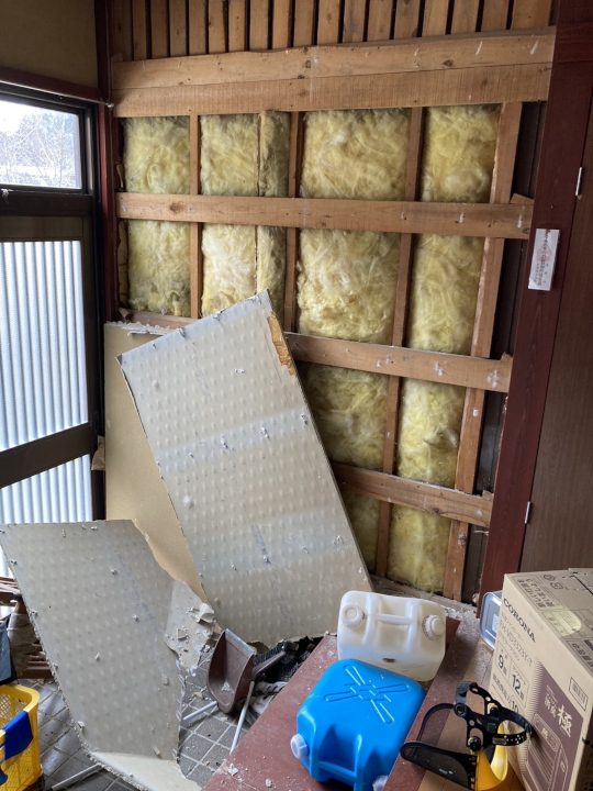 そのことを従兄弟に話をすると、地域内に住む小中学校の同級生がDIYで自宅を補修しているとの情報を得ました。避難指示が解除された後、同級生に補修した壁などを見させていただきました。併せて材料や方法などを聞き参考にしました。
